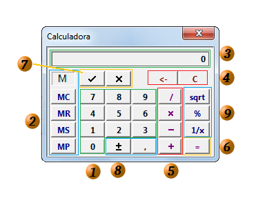 6. Totalizadores: (= ou a tecla Enter), utilizados para mostrar o resultado do cálculo, quando pressionados duas vezes, mandam o resultado para o campo selecionado