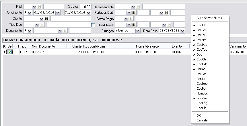 • A seleção dos filtros, assim como os valores salvos, são personalizadas por usuário, ou seja, cada usuário deverá selecionar quais campos deseja memorizar entre sessões.