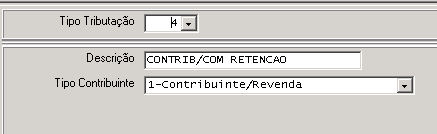 - Altere o campo Tipo Tributação para o valor criado no item 1 (4 no nosso exemplo)