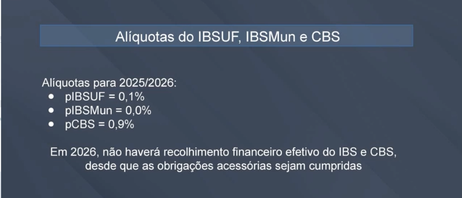| Outubro/2025 | Preenchimento dos campos IBS/CBS passa a ser obrigatório para as NF-e com data de emissão maior ou igual a 06/10/2025 e as RV serão aplicadas. | Preenchimento dos campos IBS/CBS é facultativo. Se preenchidos, as RV serão aplicadas. Sem valor jurídico para os novos tributos |