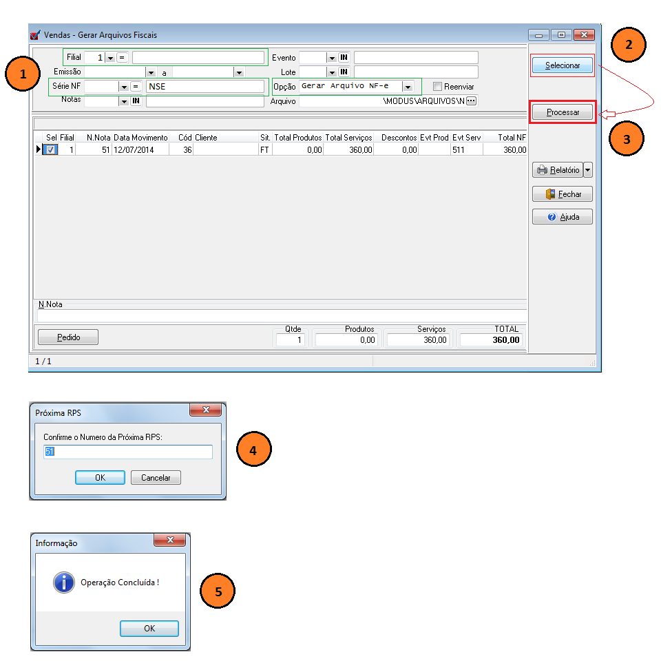 Sequencia de processos necessários para emitir NF de serviço municipal