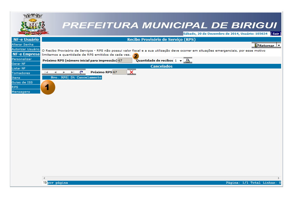 - Anote o número da próxima RPS, à direita, em seguida informe-o no sistema quando solicitado