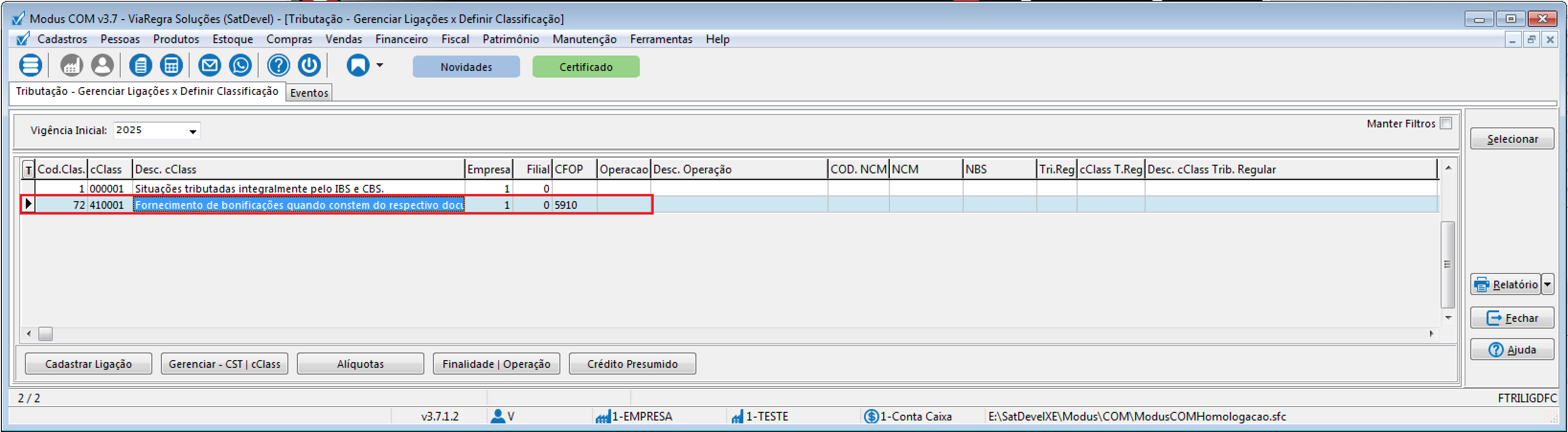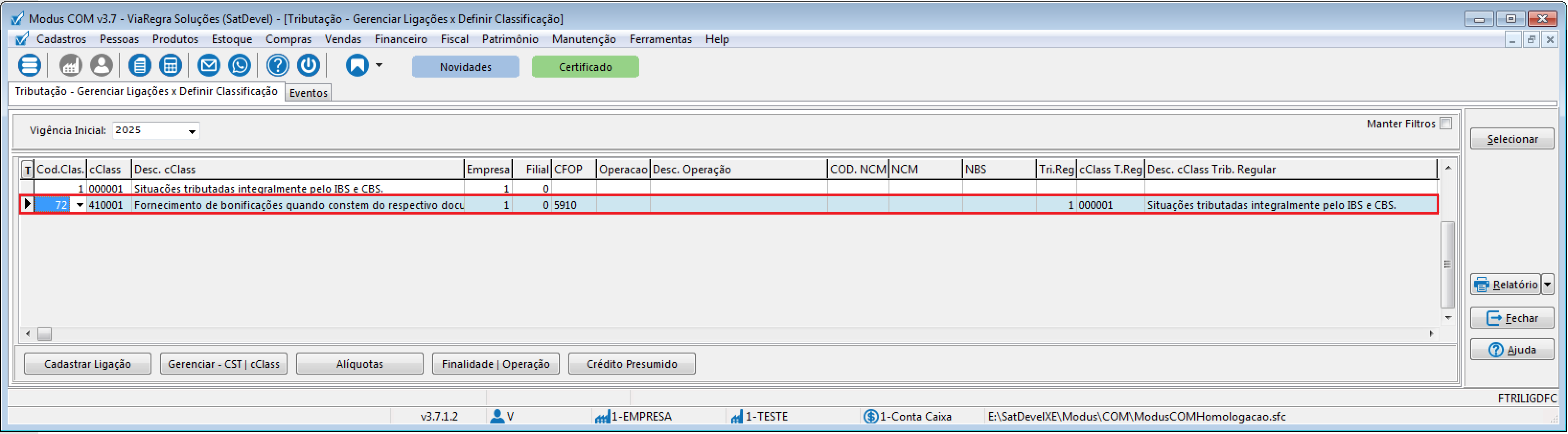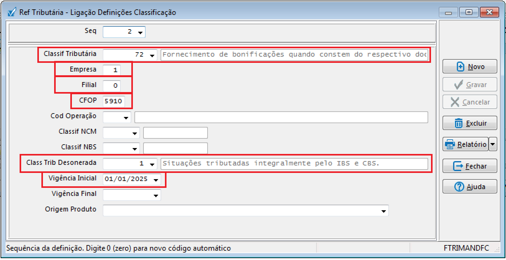Cadastrar - Ligações x Definição cClassTrib para Bonificação¶