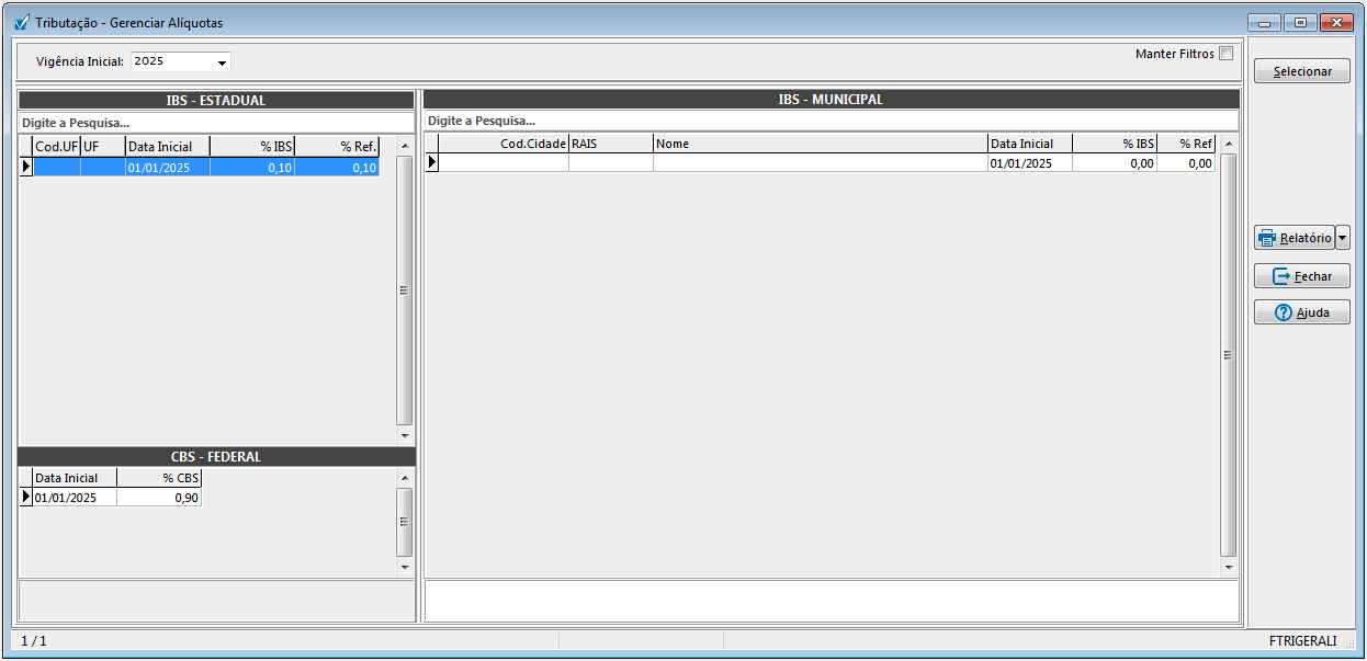 Permite gerenciar as Alíquotas Estaduais, Municipais e Federal.