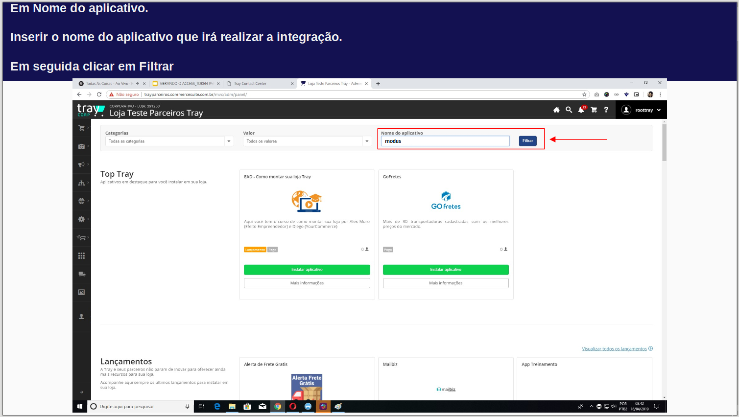 Conectar no painel de gestão Tray com o código da loja do cliente, e seguir os passos abaixo: